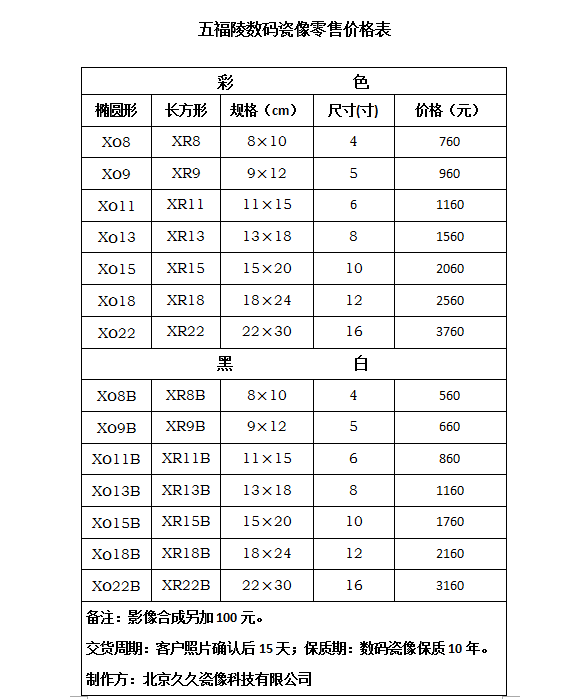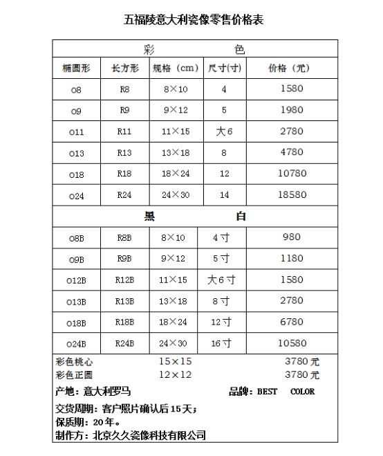 高温瓷像采用国外高级数码制像设备及制像材料,和我国传统的釉中彩陶瓷制作工艺结合一起,制作构成。